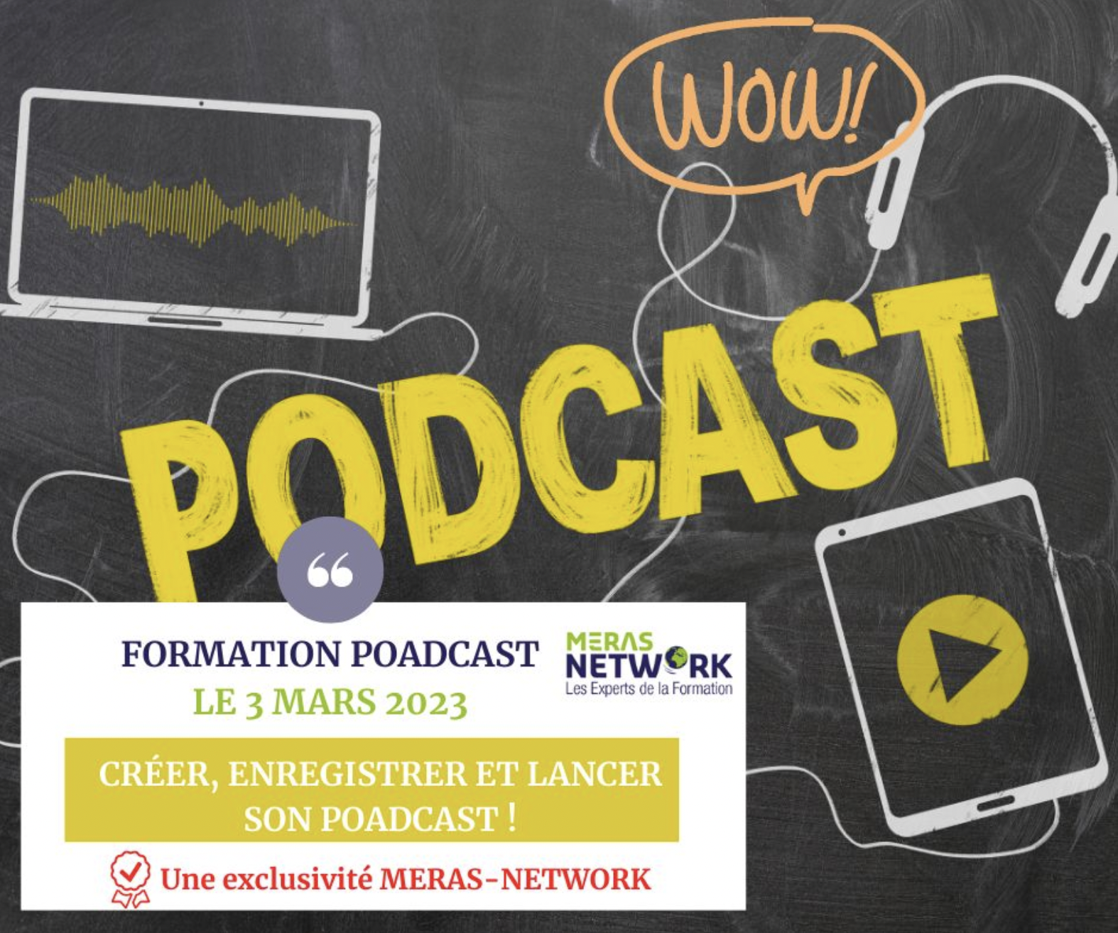 Et pour commencer cette nouvelle année, nous vous invitons à découvrir la nouvelle formation Podcast de MERAS NETWORK, réalisée en partenariat avec NUMERED CONSEIL, à partir du 3 mars (105 heures) !